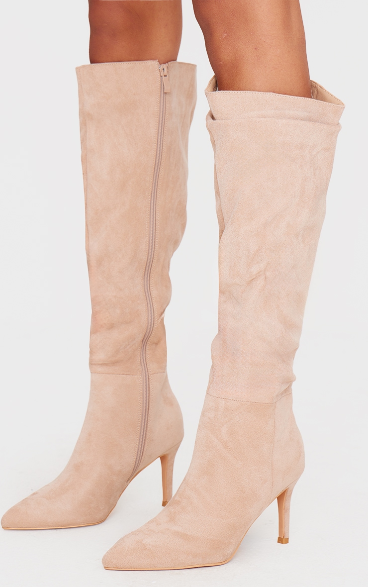 Доповніть свою нейтральну колекцію цими бежевими черевиками на шпильці з гострими носками зі штучної замші з рюшами. Ці високі чоботи, виготовлені з бежевої штучної замші з гострим носком і гофрованими деталями, миттєво підійдуть під будь-який одяг від 0 до 100. Поєднайте ці високі чоботи на шпильці до свого улюбленого образу, щоб привернути всі погляди цього сезону та за його межами. Каблук із штучної замші на блискавці 4 дюйми Категорія: ВзуттяТип продукту: Чоботи на підборахКолір: БежевийВипадок: День