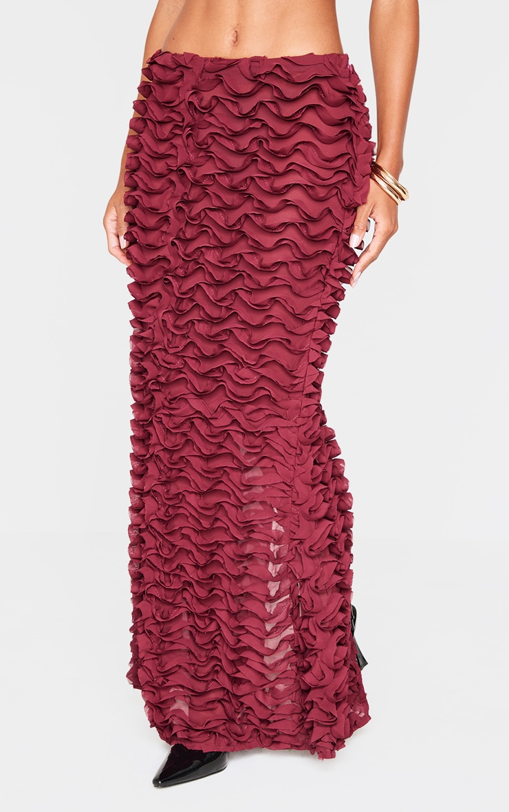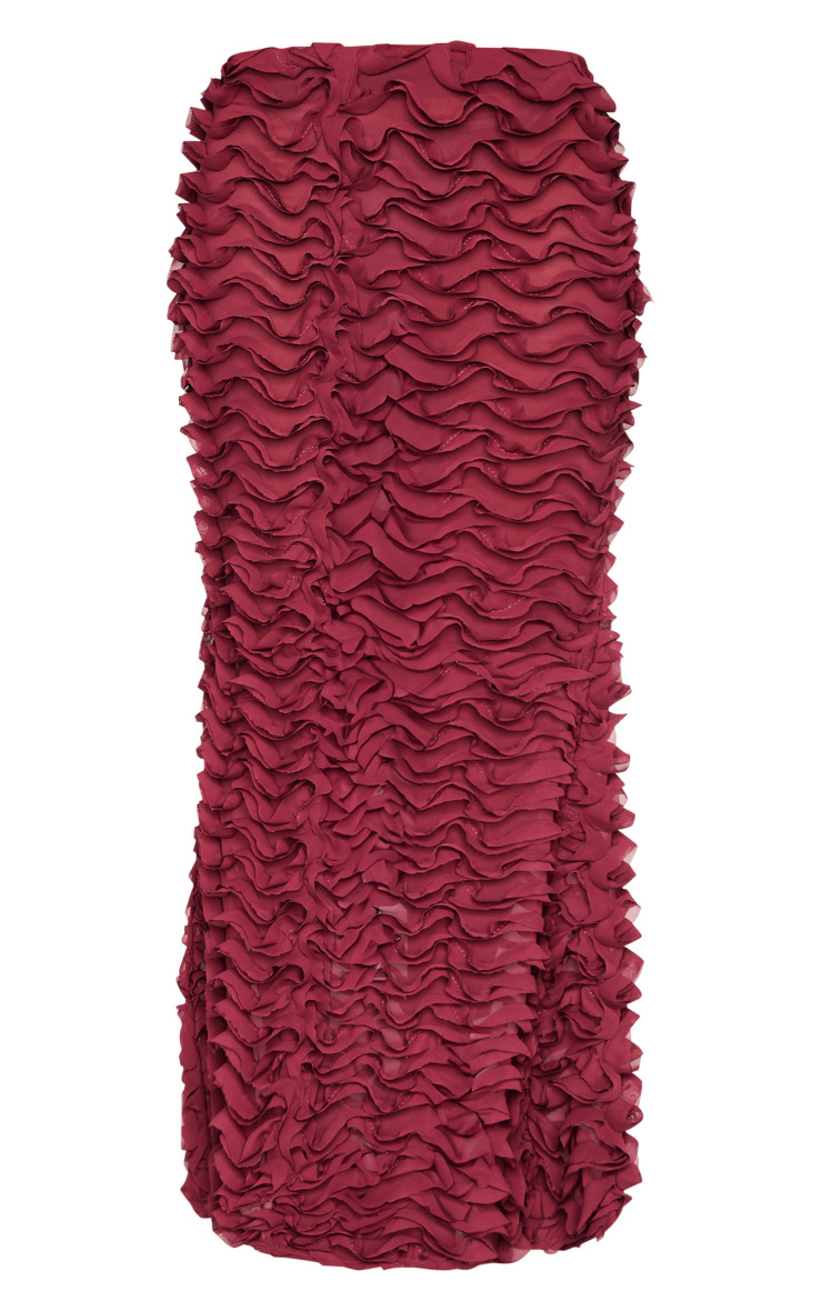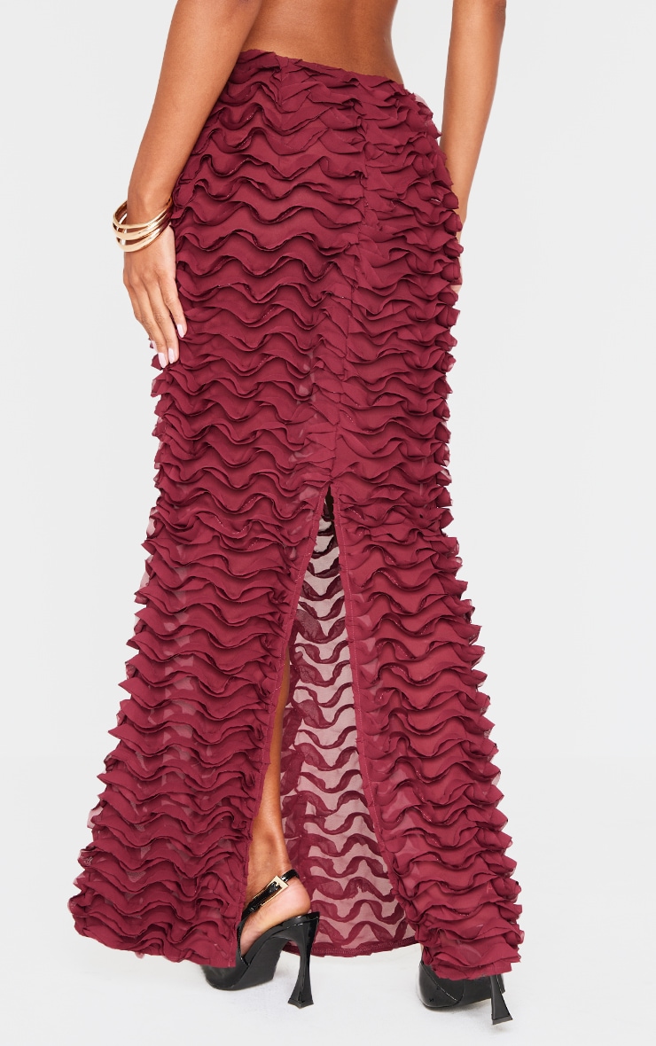 Цю бордову шифонову спідницю-максі з рюшами ідеально підійде для одягу. Виготовлений із шифону бордового відтінку з рюшами, низькими деталями та максимальною довжиною, як ви можете сказати «ні»? Поєднуйте цю максі-спідницю з відповідним топом, туфлями на підборах і золотистими аксесуарами для шикарного завершення. Довжина приблизно 108 см/42,5 дюйма (на основі розміру вибірки UK 8) На моделі одягнено розмір UK 8/ EU 36/ AUS 8/ US 4. Зріст моделі — 5 футів 10 дюймів. Категорія: Співвідносні. Тип продукту: спідниця-максі. Колір: бордовий. Матеріал: шифон. вечір
