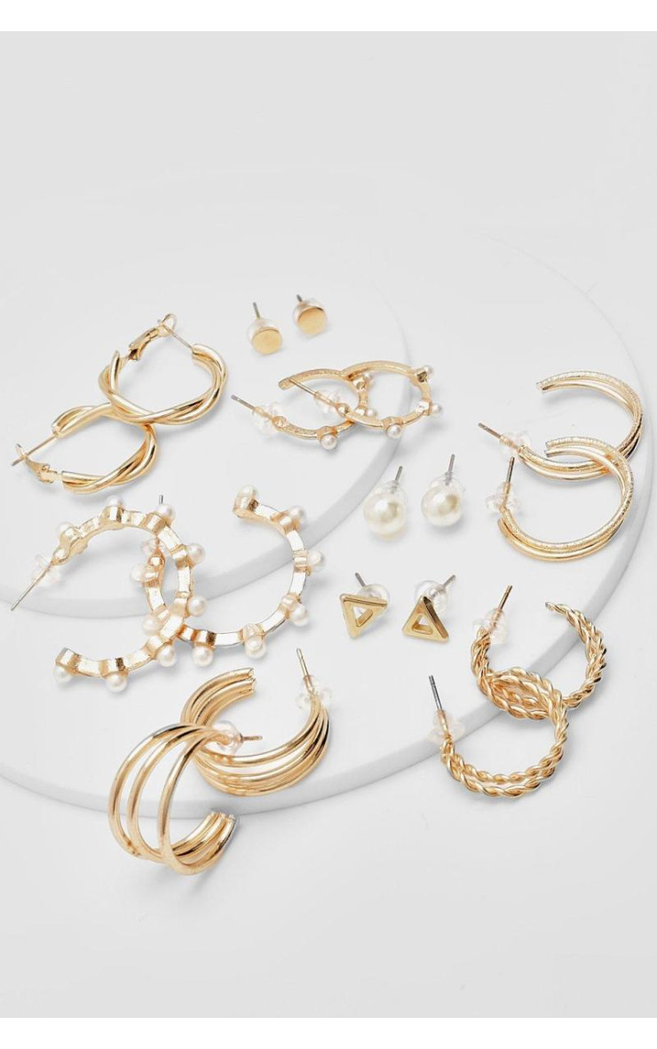 У вас ніколи не буває забагато пар обручів, і завдяки цьому мультиупаковці обручів зі штучними перлами ви готові. Незалежно від того, чи віддаєте ви перевагу товстим золотим каблучкам, подвійним каблучкам або білим перламутровим гвоздикам, ця мультиупаковка задовольнить усі ваші потреби щодо сережок. Ви можете підняти навіть найпростіший одяг на новий рівень, маючи під собою правильні сережки.