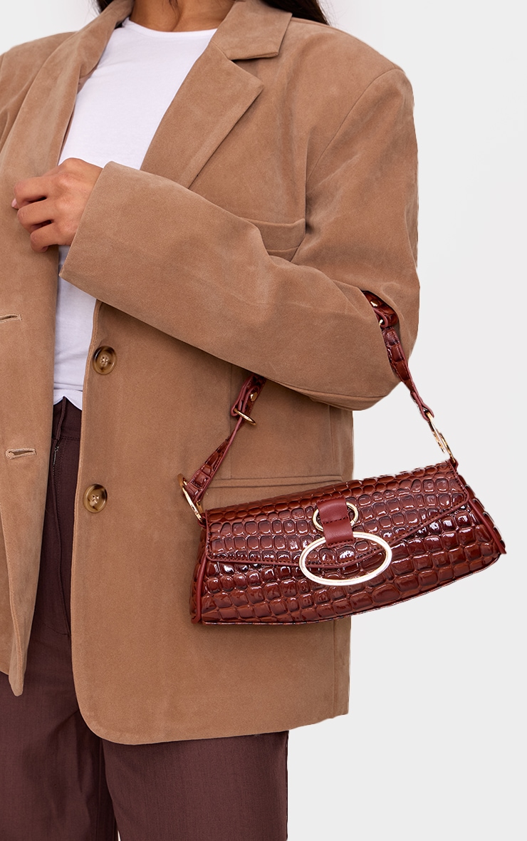 Миттєво доповніть свій наряд цією коричневою вініловою сумкою через плече з крокодильним принтом. Виготовлений з коричневого вінілового матеріалу з малюнком під крокодил і деталями посилань, як ви можете встояти? Стилізуйте цю сумку через плече з елементами свого гардеробу, щоб доповнити будь-який образ шикарним штрихом. Приблизна висота: 14 см/5,5 дюйма Приблизна ширина: 20,5 см/8 дюймів Приблизна глибина: 6 см/2,5 дюйма Категорія: Аксесуари Тип продукту: Сумка через плече Колір: Коричневий Випадок: День