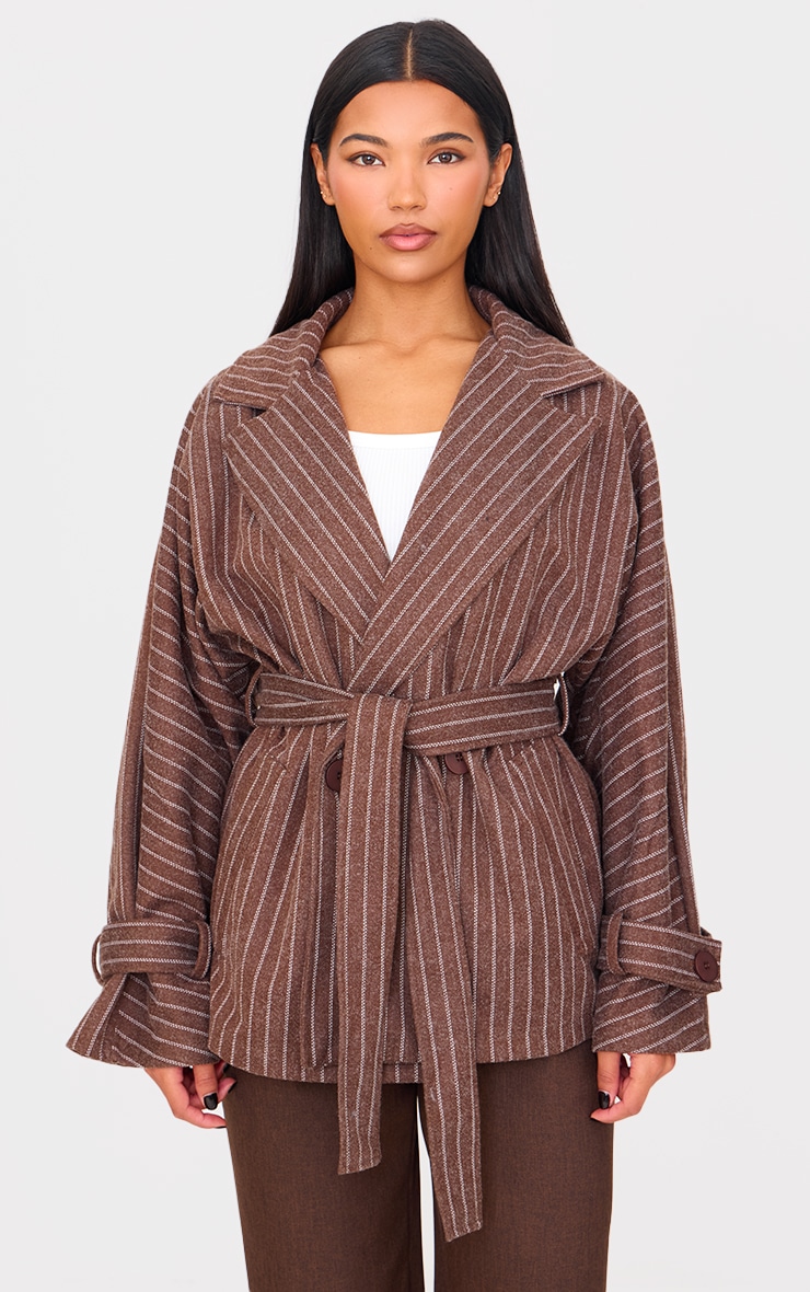 Виглядайте дуже шикарно в цьому плащі шоколадного кольору в тонку смужку із зав’язкою на талії. Цей тренч, виготовлений із матеріалу шоколадного відтінку з тонкою смужкою та зав’язкою на талії, — це те, що вам потрібно. Стиль із білою футболкою, широкими брюками та простими аксесуарами створить неперевершений образ. Довжина приблизно 74 см/29 дюймів (на основі розміру вибірки UK 8) На моделі одягнено розмір UK 8/ EU 36/ AUS 8/ US 4 Зріст моделі — 5 футів 6 дюймів Категорія: Верхній одяг Тип продукту: ТренчКолір: ШоколадМатеріал: Штучна шерстьВипадок: День