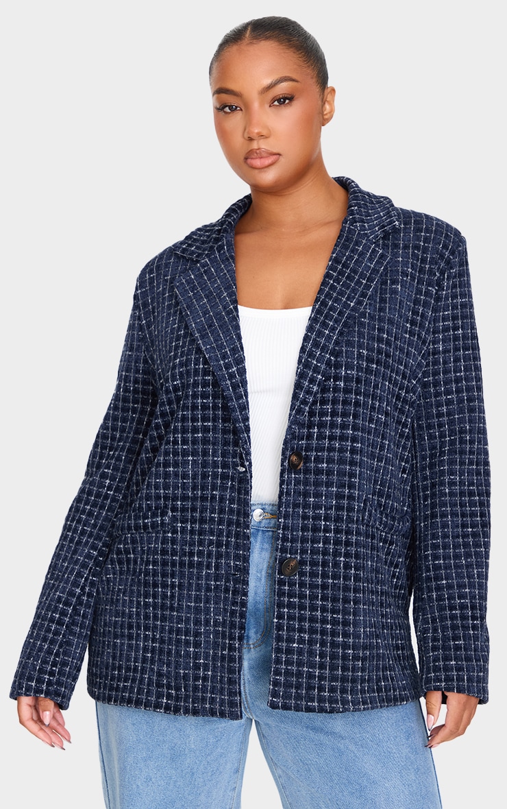 Виділяйтеся з-поміж інших із цим темно-синім піджаком у клітинку з букле. Цей плюсовий блейзер із темно-синього матеріалу букле в клітинку обов’язково приверне увагу. Об’єднайтеся з парою джинсів і простою футболкою, щоб створити образ, який принесе вам усі бали стилю незалежно від події. Довжина приблизно 73 см/28,5 дюйма (на основі розміру вибірки UK 16) На моделі одягнено розмір UK 16/ EU 44/ AUS 16/ US 12. Зріст моделі — 5 футів 6 дюймів. Категорія: Верхній одяг. Тип продукту: Приталений піджак. Колір: темно-синій. Матеріал: штучна шерсть. LongOccasion: День