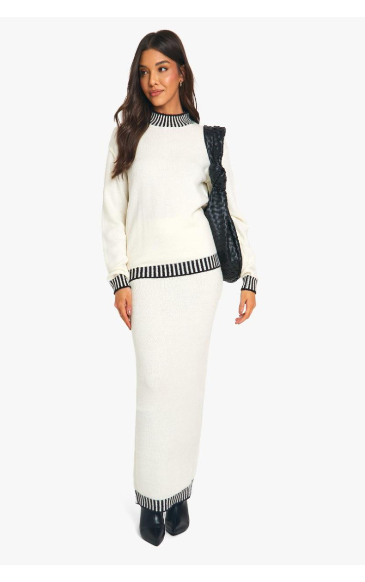 Трикотажний джемпер преміум-класу з контрастною обробкою та максі-спідниця