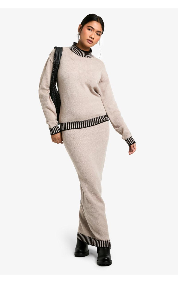 Трикотажний джемпер преміум-класу з контрастною обробкою та максі-спідниця