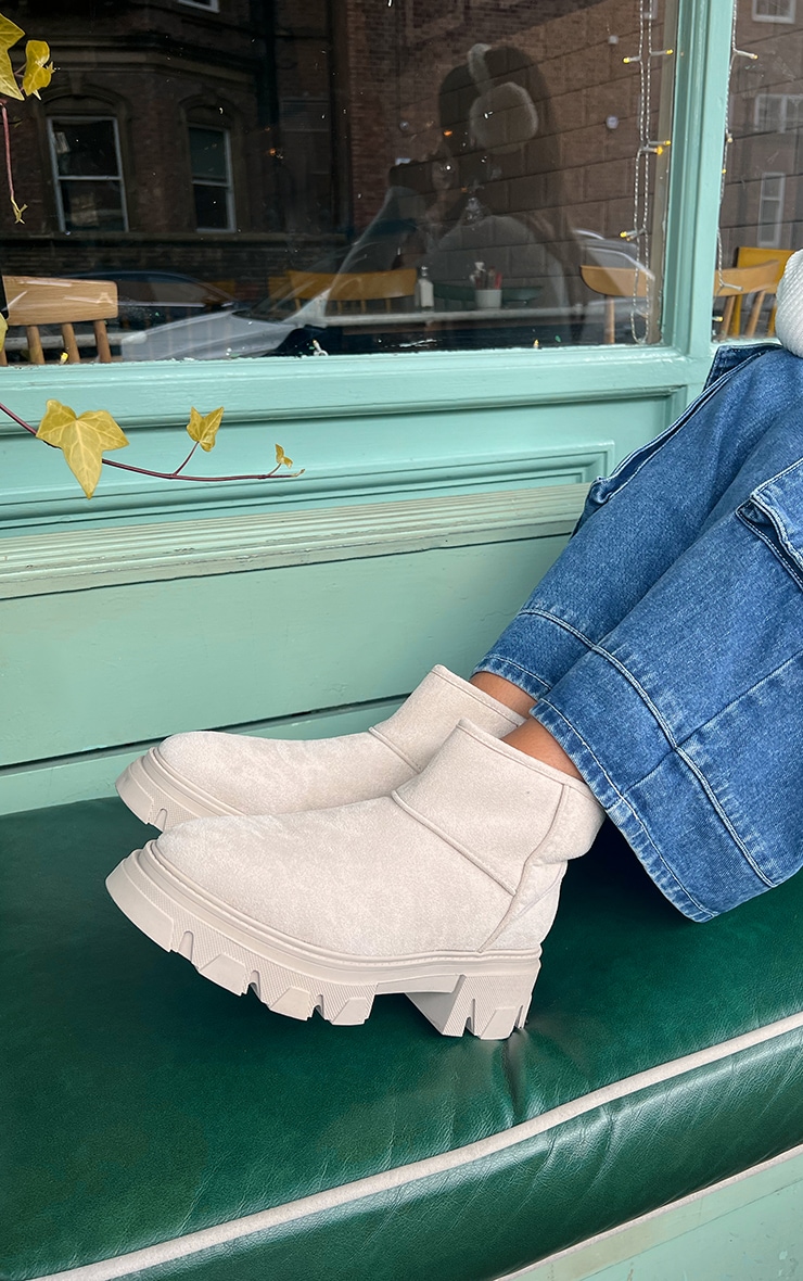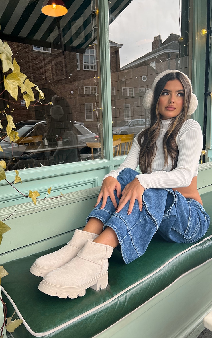Доповніть свій образ дня цими масивними ботильйонами з круглої підкладки з кремової штучної замші. Пропонуємо вам кремовий матеріал із штучної замші з круглим дизайном на підкладці борг і масивним кроєм. Ці ботильйони – все, що вам потрібно, щоб додати гострої атмосфери вашому образу. Штучна замша PullonКатегорія: ВзуттяТип продукту: БотильйониКолір: КремовийВипадок: День