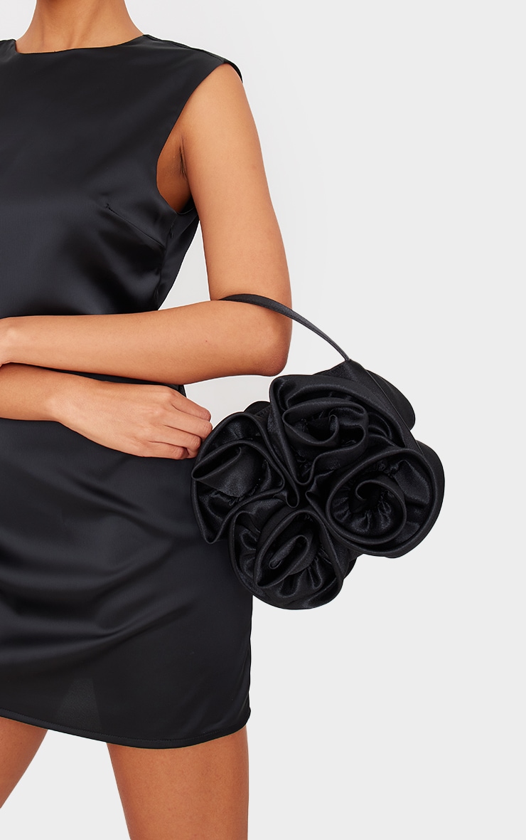 Миттєво покращте свій вихідний образ за допомогою цієї чорної атласної сумочки з трояндами. Представлений вам у чорному атласному матеріалі з рожевими деталями для додаткового відтінку розкоші, як ви можете сказати «ні»? Стилізуйте цю атласну сумочку під свій улюблений одяг для ідеального завершального штриха будь-якого образу. Приблизна висота: 16,5 см/6,5 дюйма Приблизна ширина: 20,5 см/8 дюймів Приблизна глибина: 10 см/4 дюйма Категорія: АксесуариТип продукту: СумочкаКолір: Чорний Випадок: Вечір