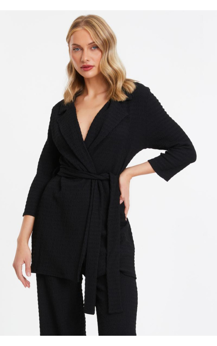 Цей передній блейзер має текстурований дизайн та універсальний силует, що робить його придатним як для випадкових, так і для робочих одягу. Ідеально підходить для шарування або носіння наодинці.