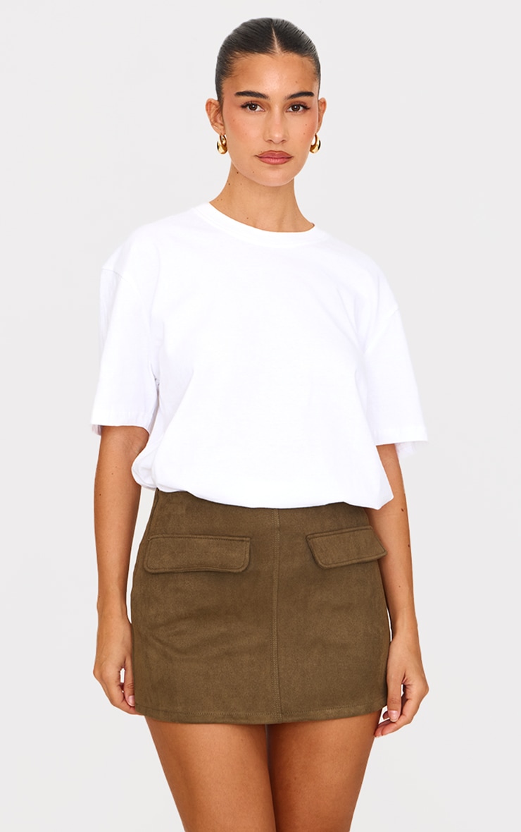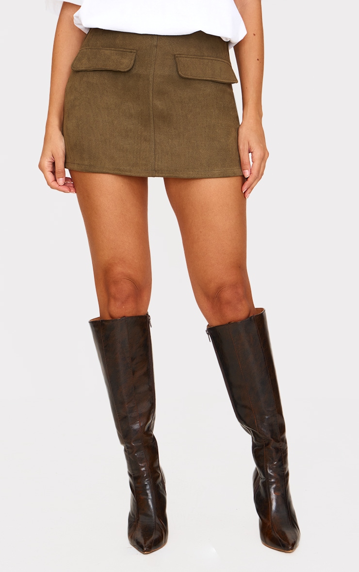 Підніміть свій вихідний образ на нову висоту з цією міні-спідницею кольору хакі з кишенями та штучною замшею. Виготовлений зі штучної замші кольору хакі з кишенею спереду та мініатюрною довжиною, що не подобається? Стилізуйте цю міні-спідницю з футболкою, черевиками на підборах до коліна та простими аксесуарами для образу, якого ми просто не можемо натішитися. Довжина приблизно 33 см/13 дюймів (на основі розміру вибірки UK 8) На моделі одягнено розмір UK 8/ EU 36/ AUS 8/ US 4. Зріст моделі — 5 футів 7 дюймів. Категорія: низ. Тип продукту: міні-спідниця. Колір: хакі. Матеріал: штучна замша.