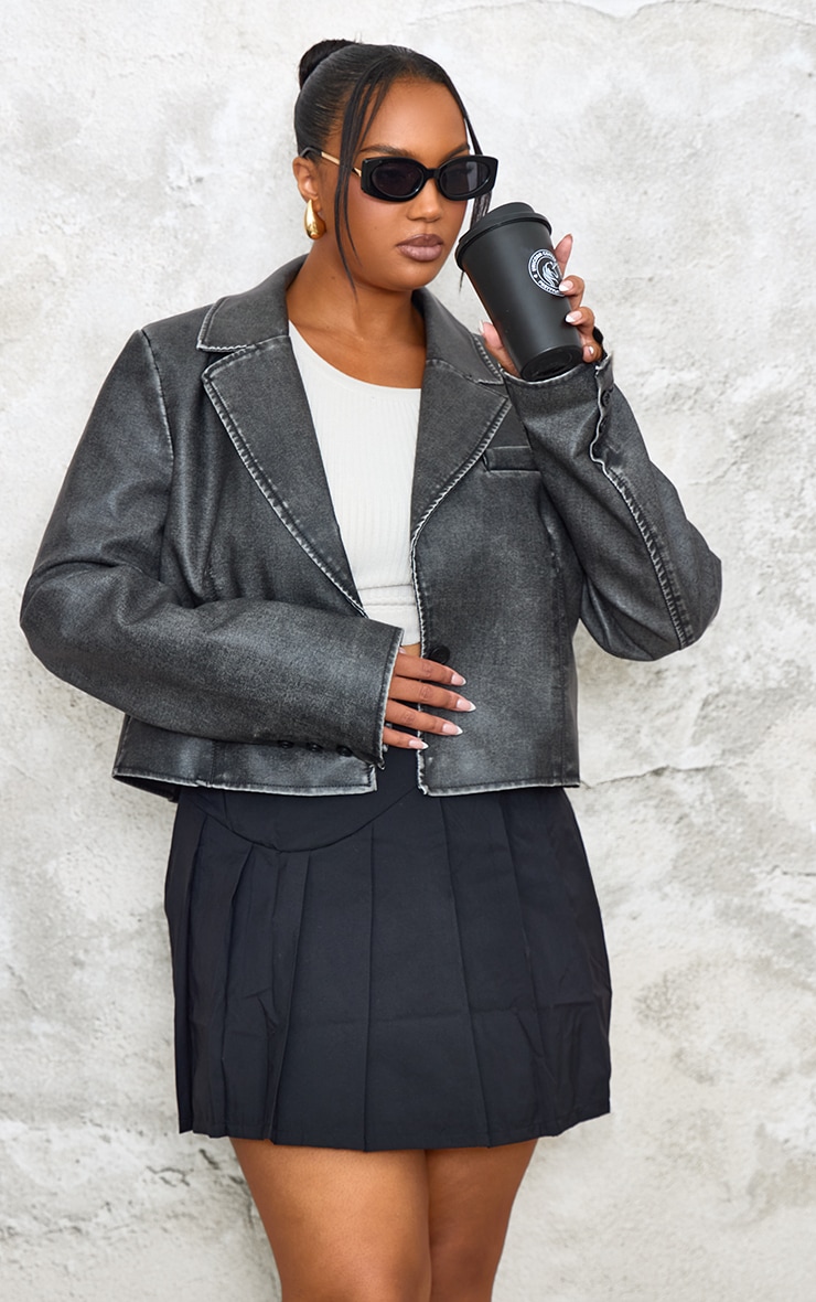 Цей укорочений піджак із чорної випраної штучної шкіри додасть переваги вашому вбранню дня. Чого ще можна побажати? Поєднуйте цей укорочений блейзер із міні-спідницею, укороченою футболкою та лоферами для легкого шикарного образу, який ми любимо. Довжина приблизно 58 см/23" (на основі розміру вибірки UK 16) На моделі одягнено розмір UK 16/ EU 44/ AUS 16/ US 12. Зріст моделі — 5 футів 6 дюймів. Категорія: Верхній одяг. Тип продукту: Блейзер великого розміру. Колір: чорнийМатеріал: штучна шкіра. Рукава: довгі. Випадок: день