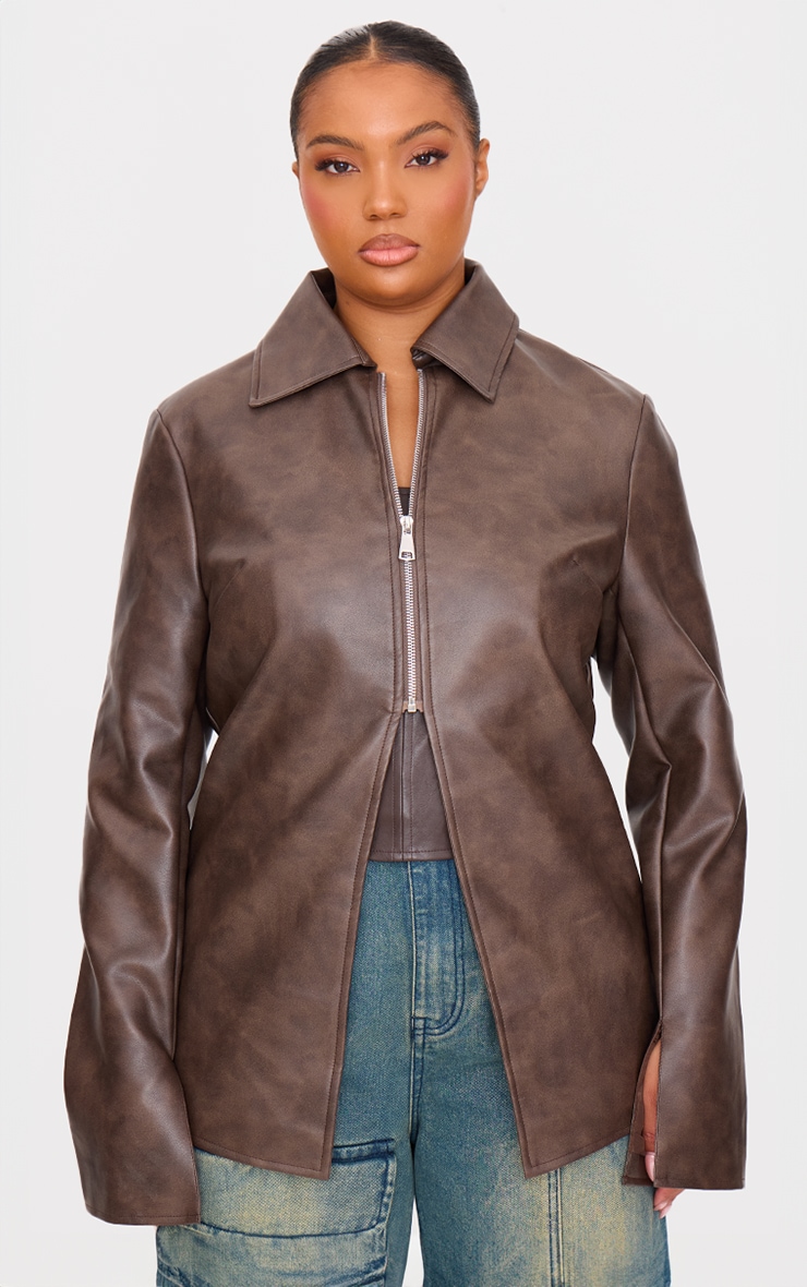 Додайте до свого гардеробу яскравих речей із цією курткою зі штучної шкіри з коричневим випраним розрізним подолом і великим коміром. Представлений вам у коричневому випраному штучному шкіряному матеріалі з розрізним краєм і великим дизайном. Що не сподобається? Ця куртка з коміром — усе, що вам потрібно, щоб привернути увагу. Додайте джинси та туфлі на підборах, щоб створити ідеальну обробку, яку ми любимо. Довжина приблизно 58 см/23" (на основі розміру вибірки UK 16) На моделі одягнено розмір UK 16/ EU 44/ AUS 16/ US 12. Зріст моделі - 5 футів 6 дюймів. Категорія: Верхній одяг. Тип продукту: Байкерська куртка. Колір: Коричневий. Матеріал: Штучна шкіра. Рукава: Довгі. Випадок: День.